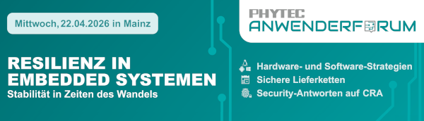 Wie man Lieferketten absichert, Produktdesigns resilient gestaltet und regulatorische Anforderungen wie den Cyber Resilience Act erfüllt, zeigt PHYTEC beim 4. PHYTEC Anwenderforum am 22. April 2026 in Mainz.